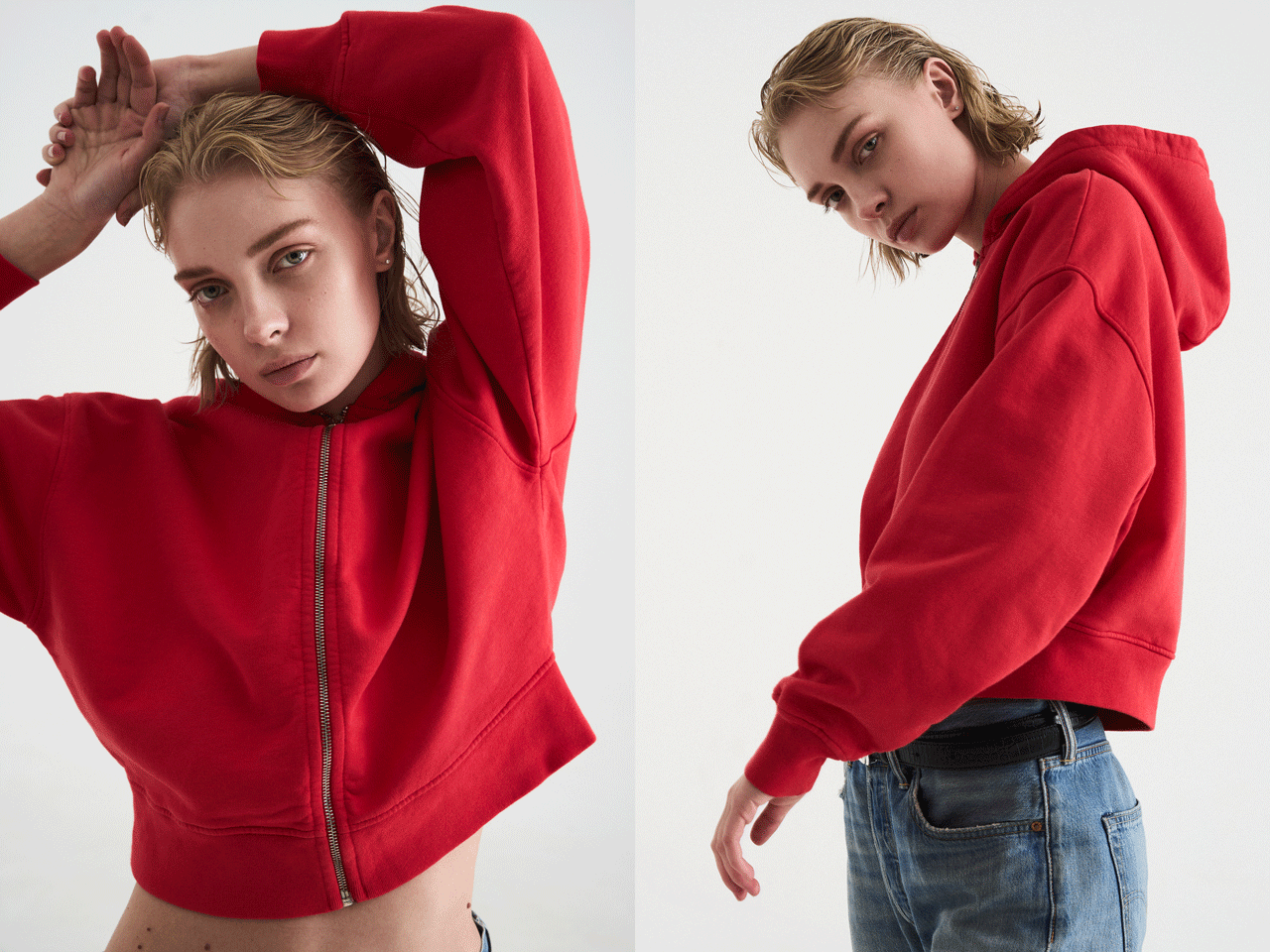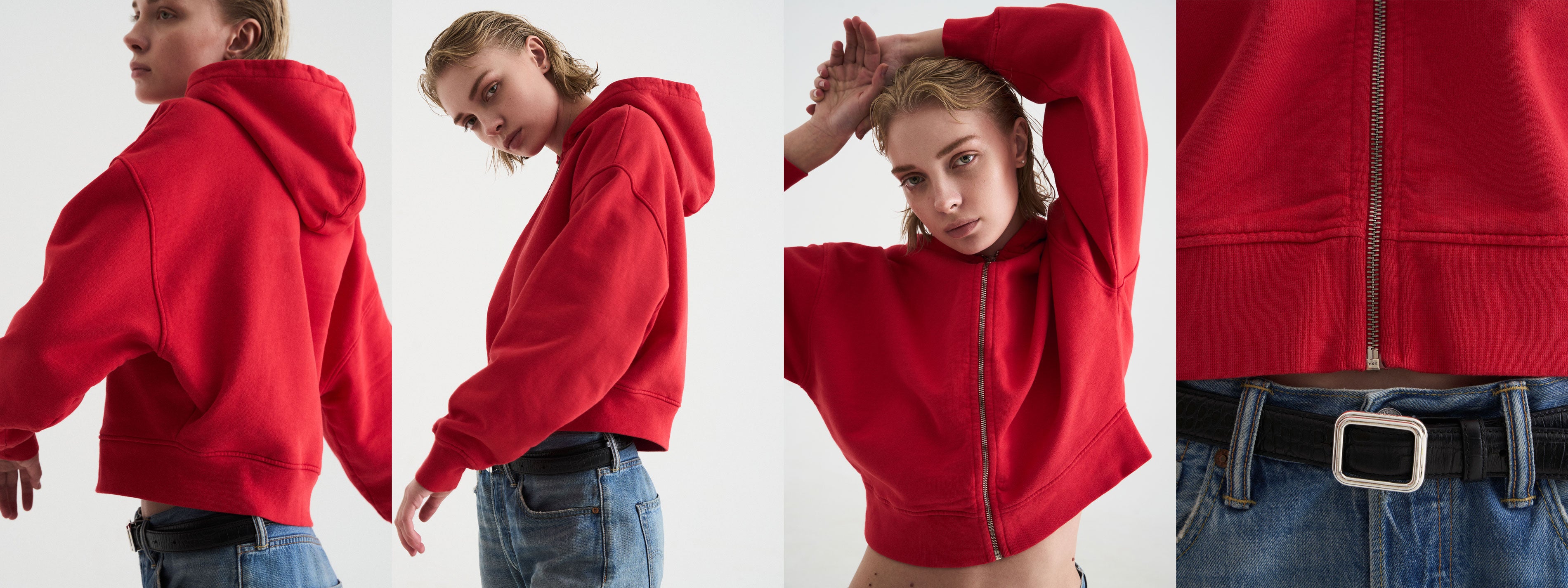 Organic Crop Zip Hood - Red Tangerine