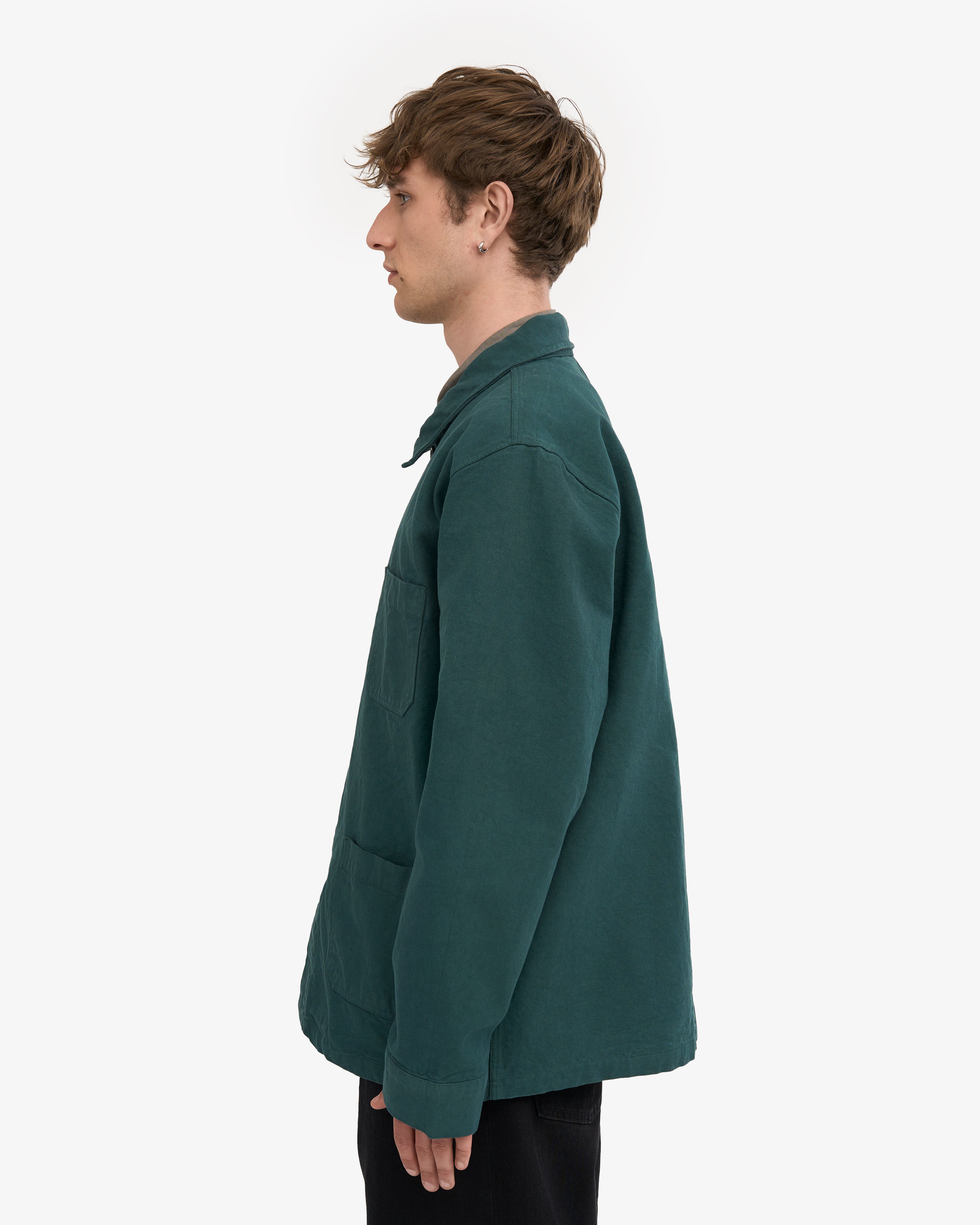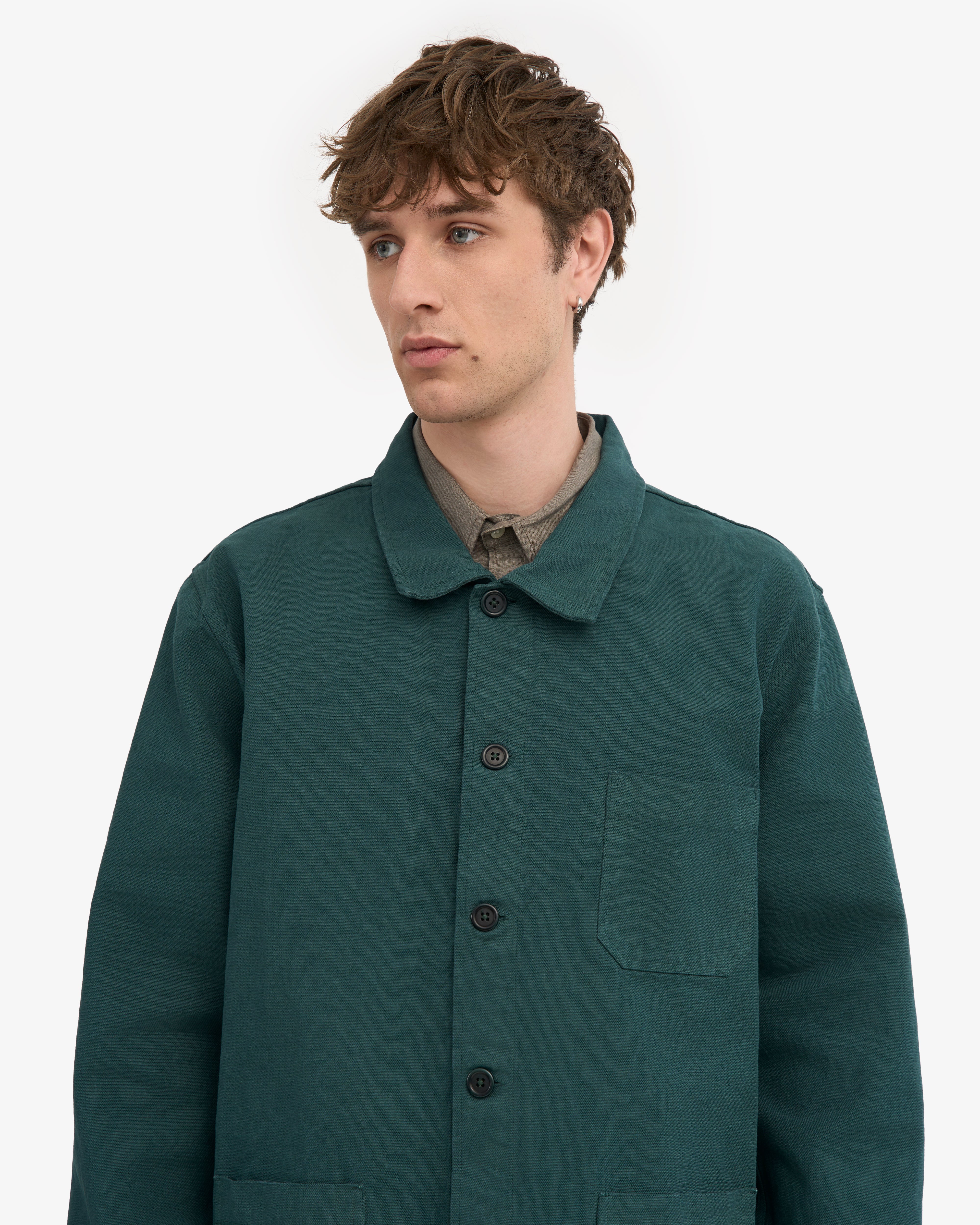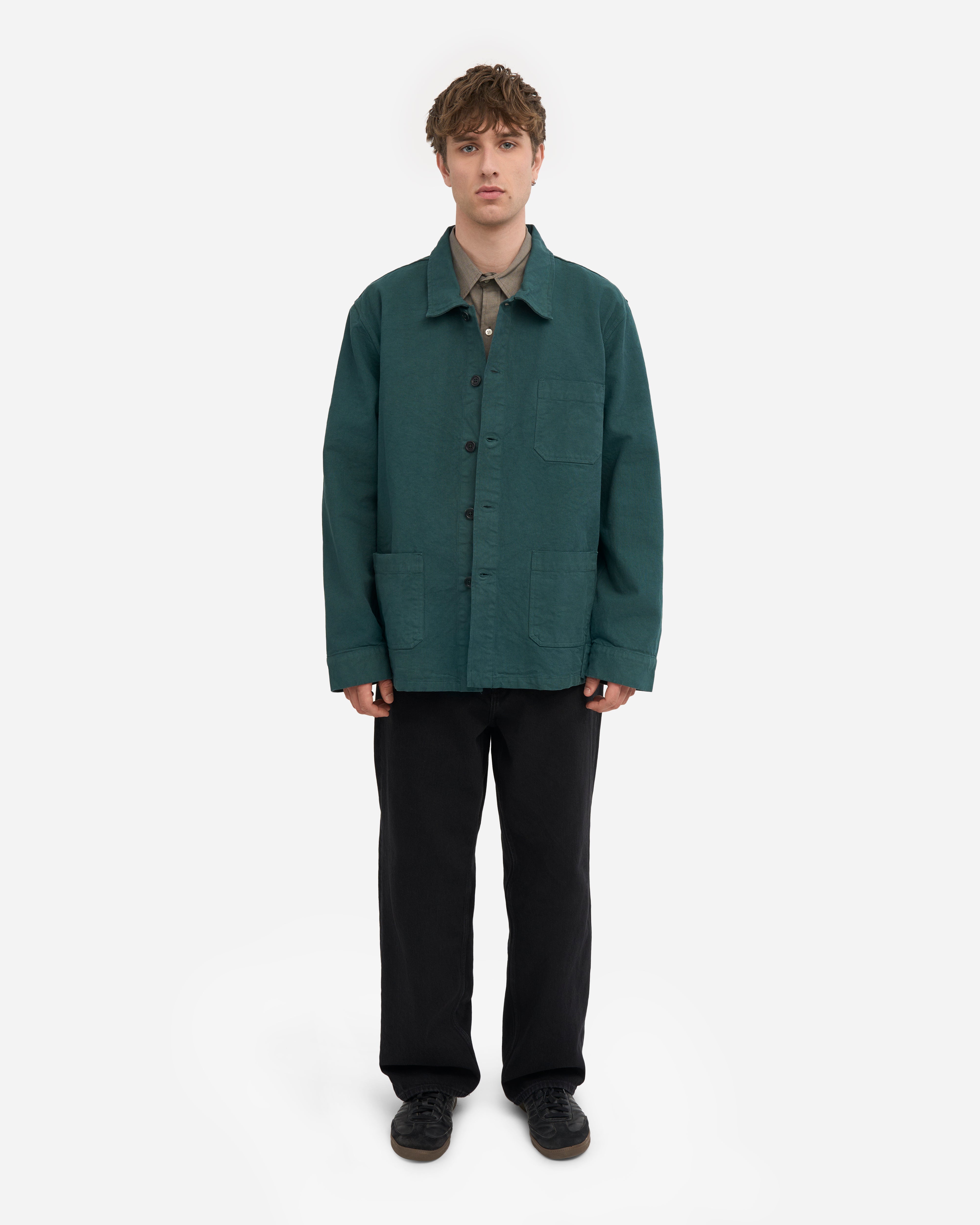 Introducing our Men's Organic Workwear Jacket is a rugged yet refined outer layer designed to withstand the demands of the job while prioritizing sustainability and comfort. Crafted with meticulous attention to detail and made from 100% organic cotton. This contemporary jacket is inspired by traditional workwear aesthetics. With its classic design elements and functional details, this jacket pays homage to traditional workwear while incorporating modern updates for contemporary appeal. From the multiple pockets for storing essentials to the sturdy button closure, every feature is thoughtfully crafted to enhance both form and function. Designed for everyday wear, this jacket features a regular fit that strikes the ideal balance between comfort and versatility. Versatile enough to pair with any outfit, this Workwear Jacket effortlessly complements both casual and dressed-up looks. Layer it over a t-shirt and jeans for a relaxed weekend vibe, or wear it with chinos and a button-down shirt for a more refined ensemble – the possibilities are endless.