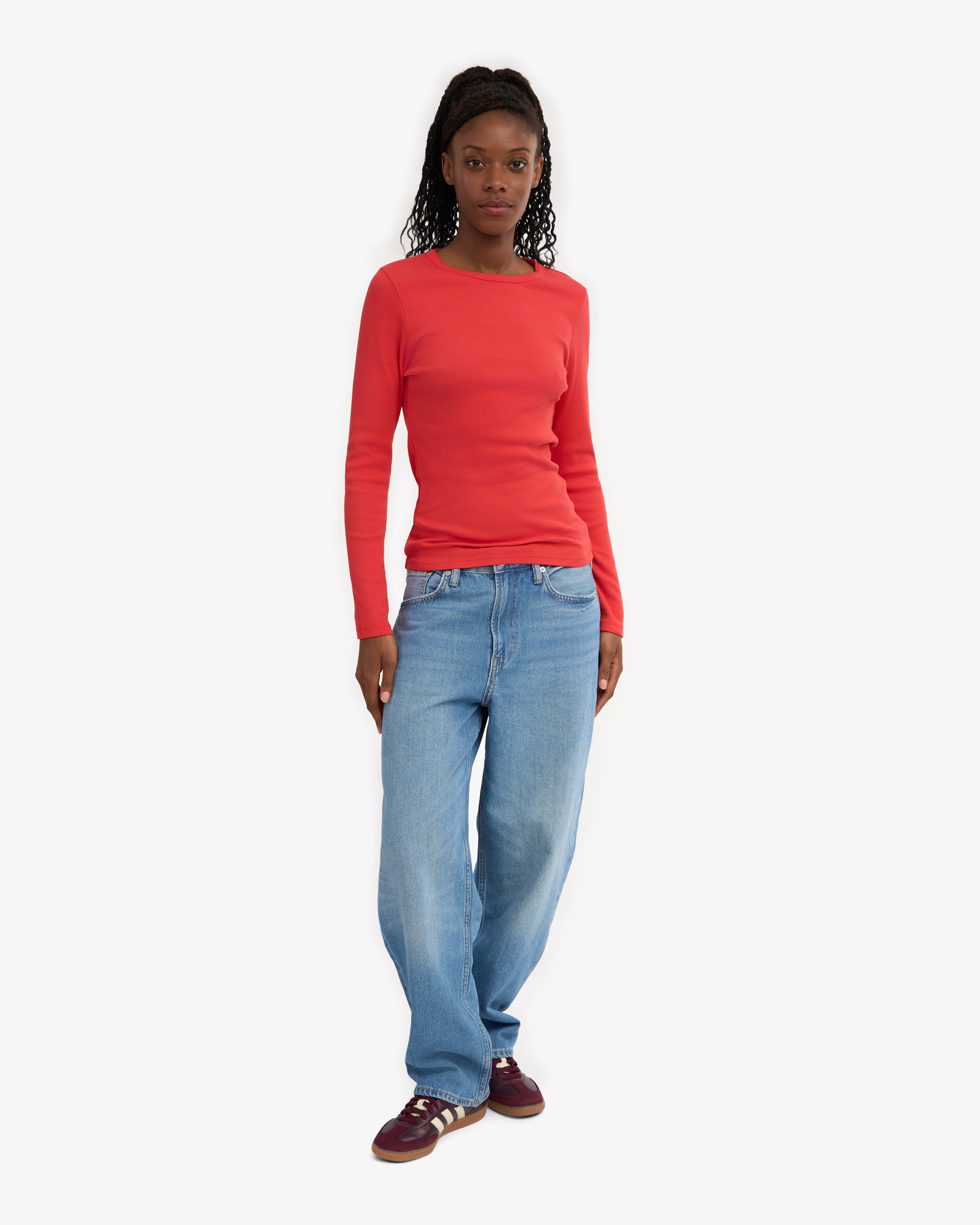 Women Organic Rib LS T-Shirt - Red Tangerine