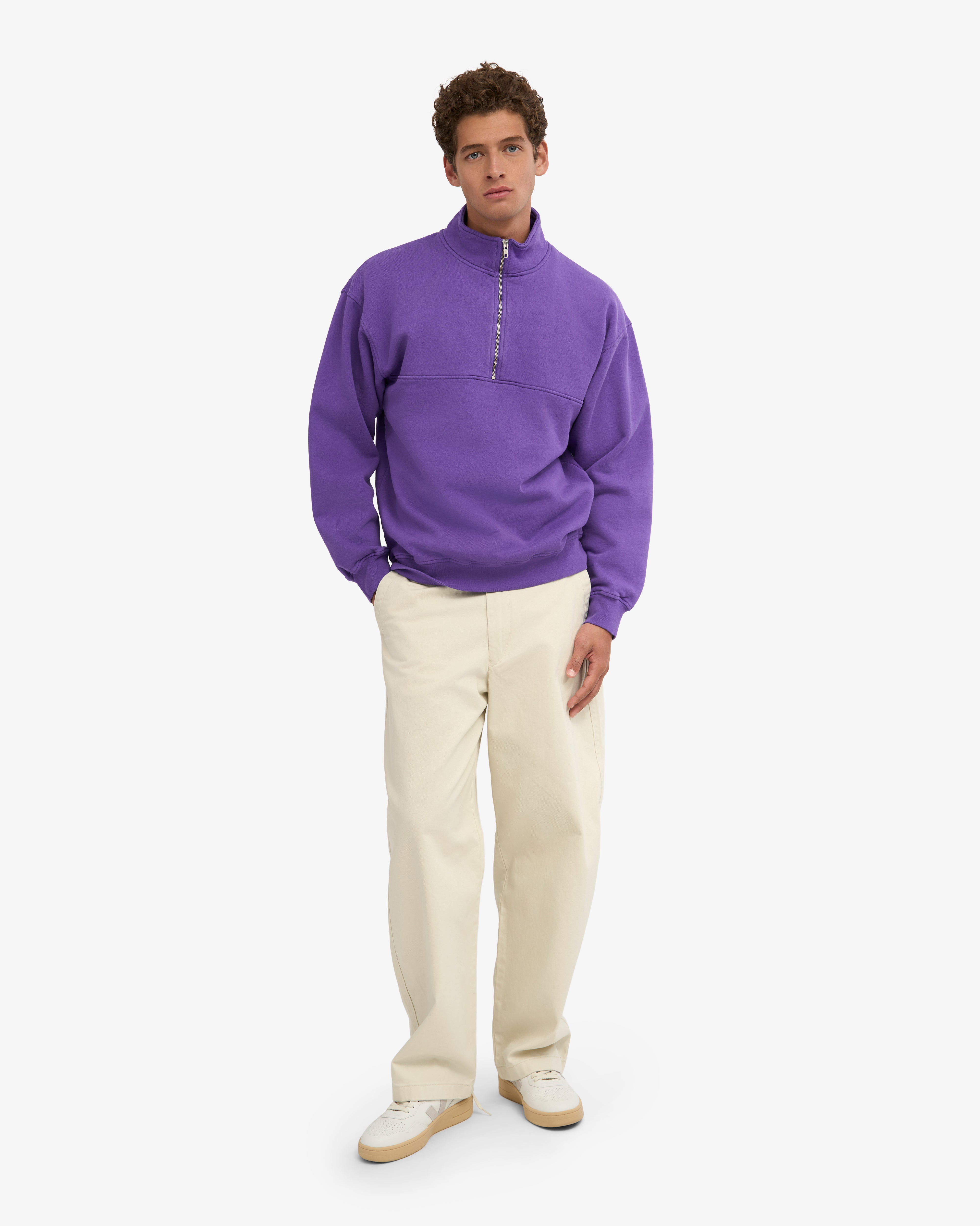 The oversized silhouette, thoughtfully designed for comfort, allows ease of movement and presents a contemporary twist on a classic style. The quarter-zip design offers a sophisticated alternative to traditional pullovers, ideal for both casual and semi-formal occasions.