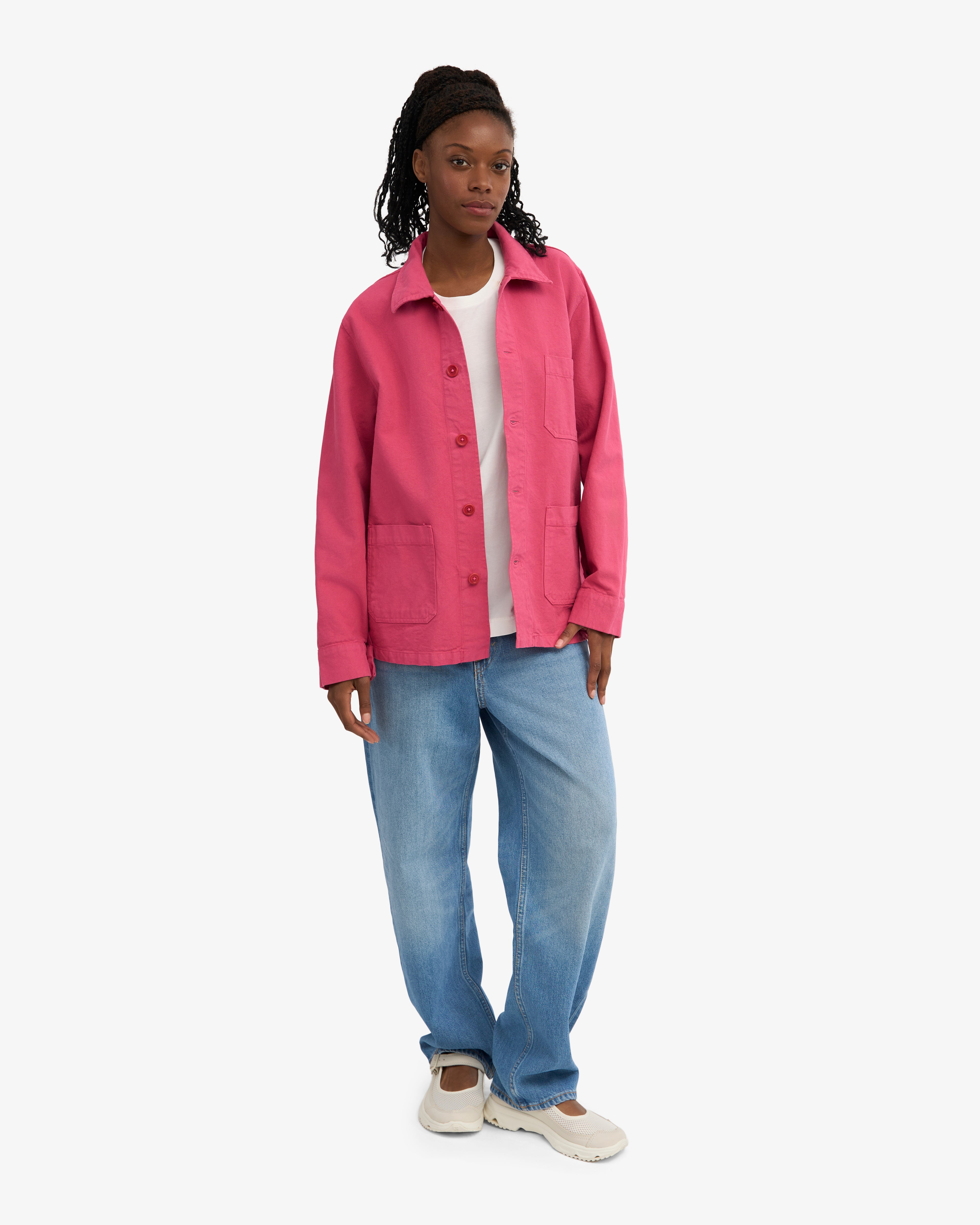 Our Women's Organic Workwear Jacket is a versatile outer layer that effortlessly blends classic style with modern functionality. Inspired by the durability of traditional workwear, this jacket is designed to withstand the demands of everyday life, while keeping you looking stylish. Featuring a regular fit silhouette and relaxed design, perfect to wear as a top layer to add definition to your look. This 'workwear-inspired' jacket adds a touch of rugged sophistication to any look. Pair it with jeans and our Boxy Crop Tee for a casual weekend ensemble, or layer it over a dress for a chic office-ready look. Featuring multiple pockets and a classic front button down, Constructed from premium organic cotton canvas, this workwear jacket offers exceptional durability and breathability, making it the perfect go-to jacket.