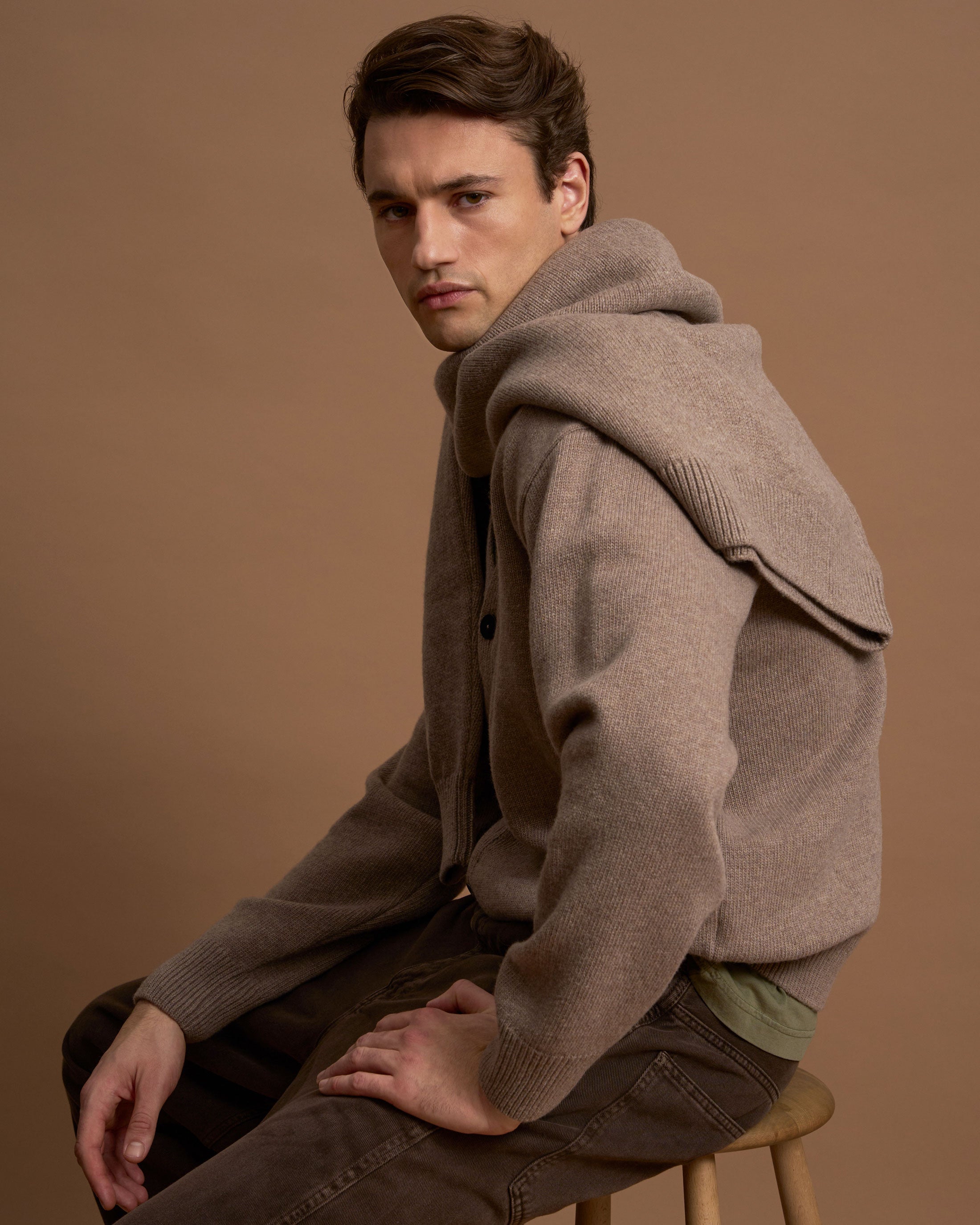 Merino Wool V-Neck Cardigan - Warm Taupe