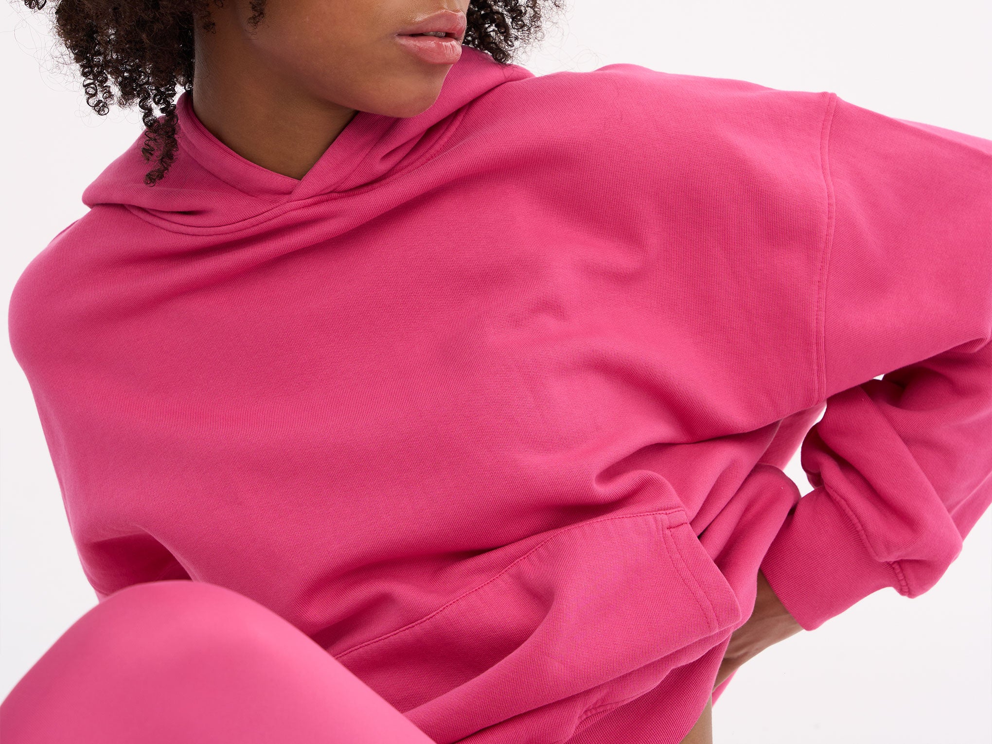 Classic kangaroo pocket and elasticated cuffs.