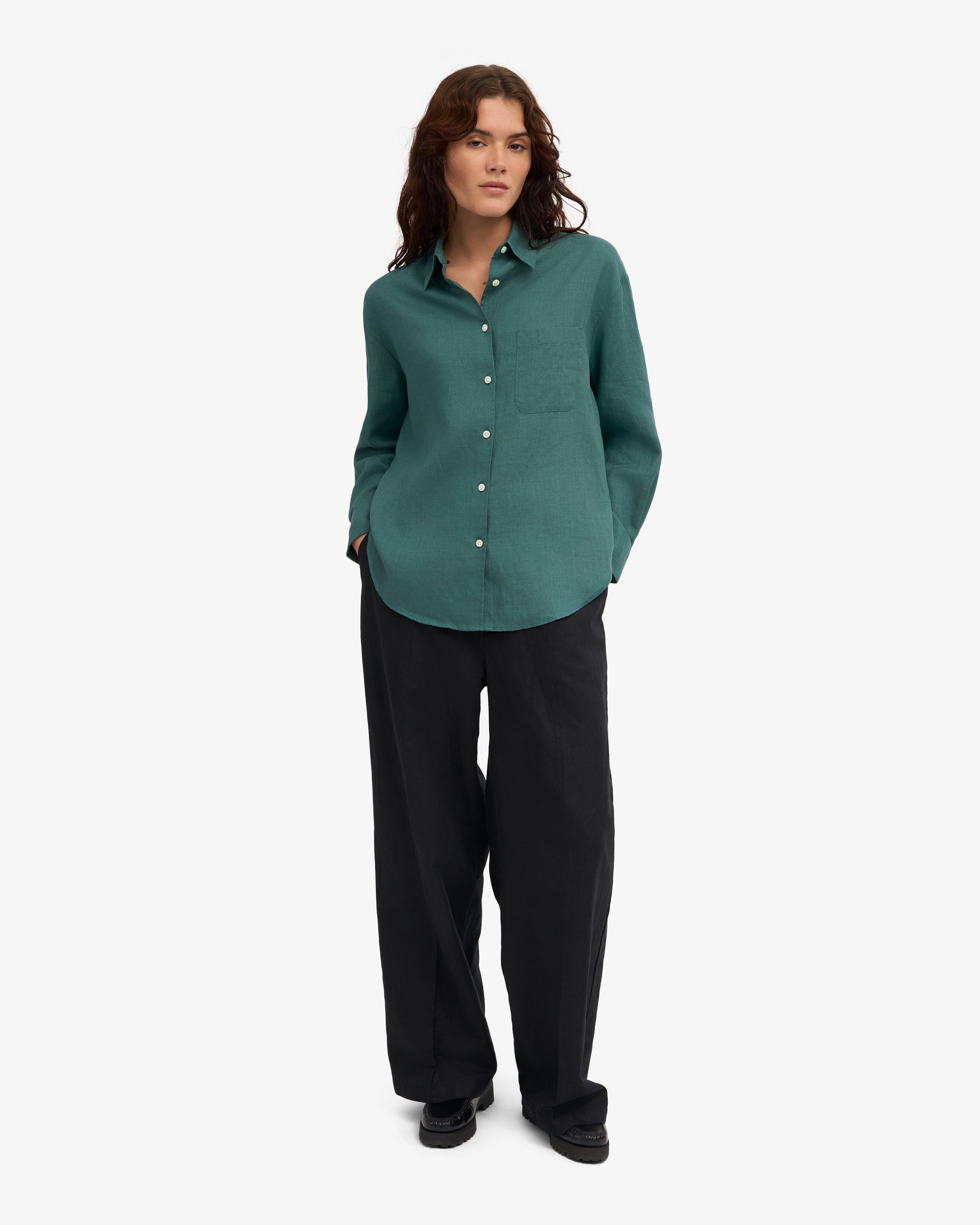 Linen Oversized Shirt - Ocean Green
