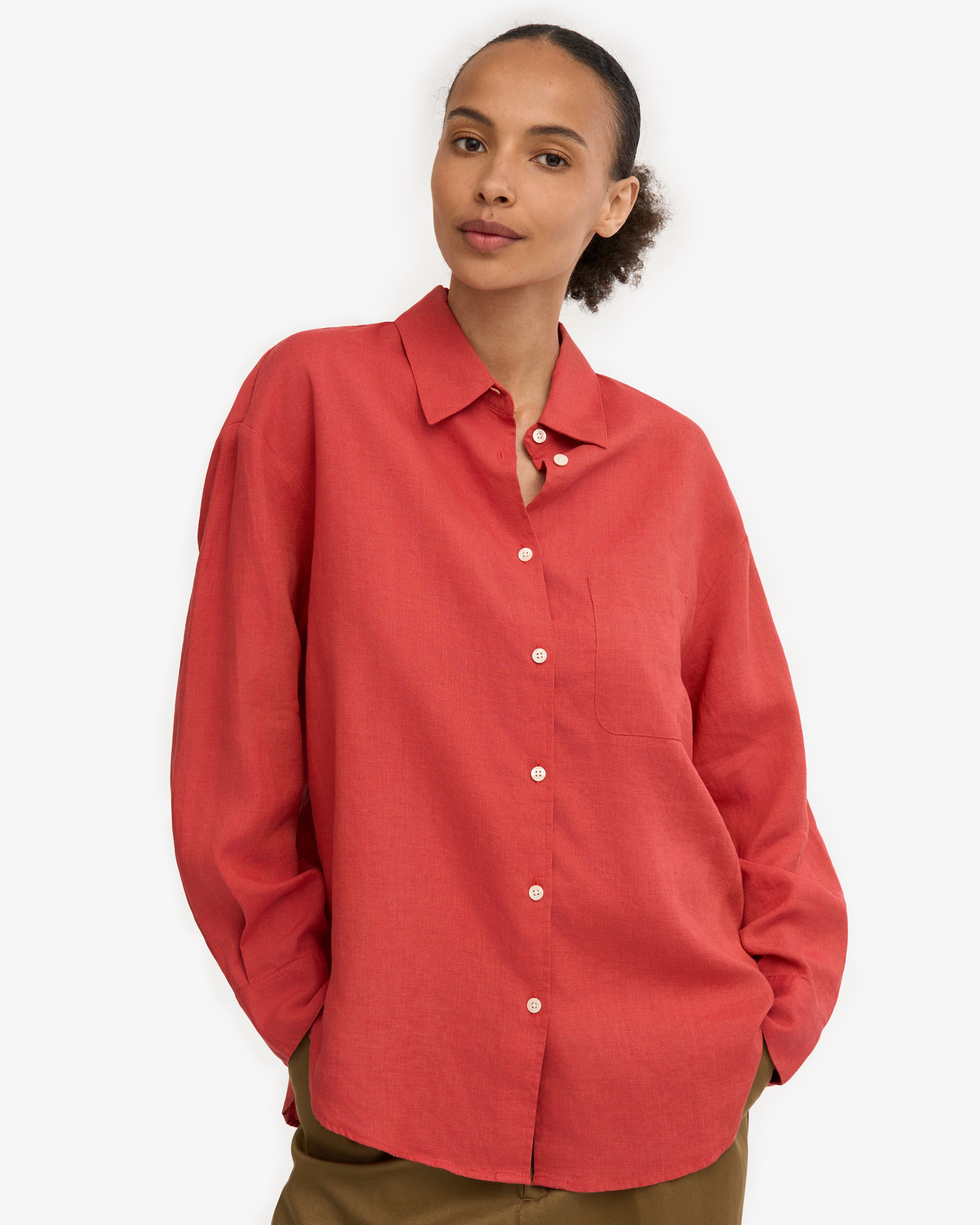 Linen Oversized Shirt - Red Tangerine