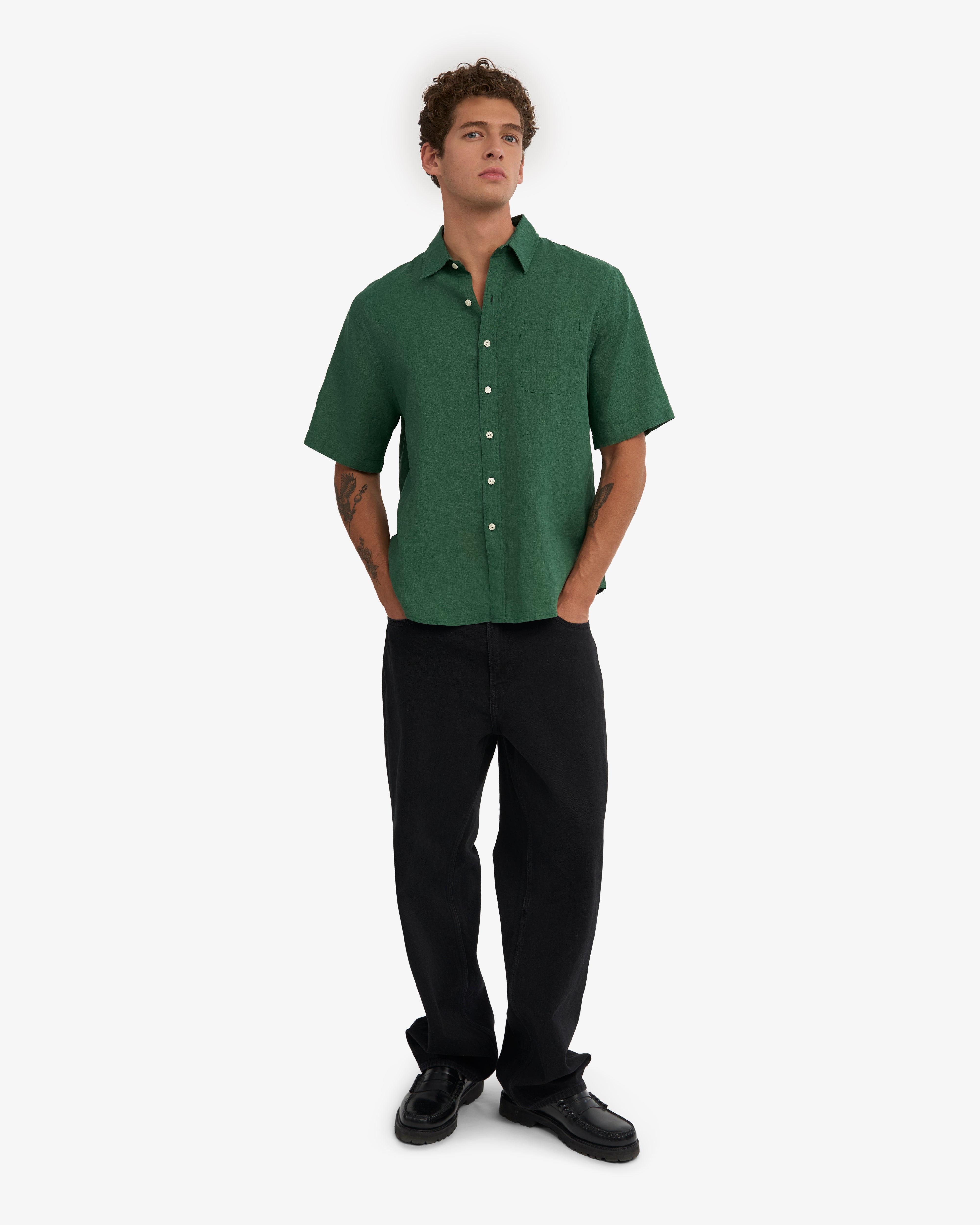 Made from 100% linen, it’s super light and breathable. Basically made for hot days and chill plans. The relaxed fit makes it easy to wear, and the new collar gives it a little extra polish.