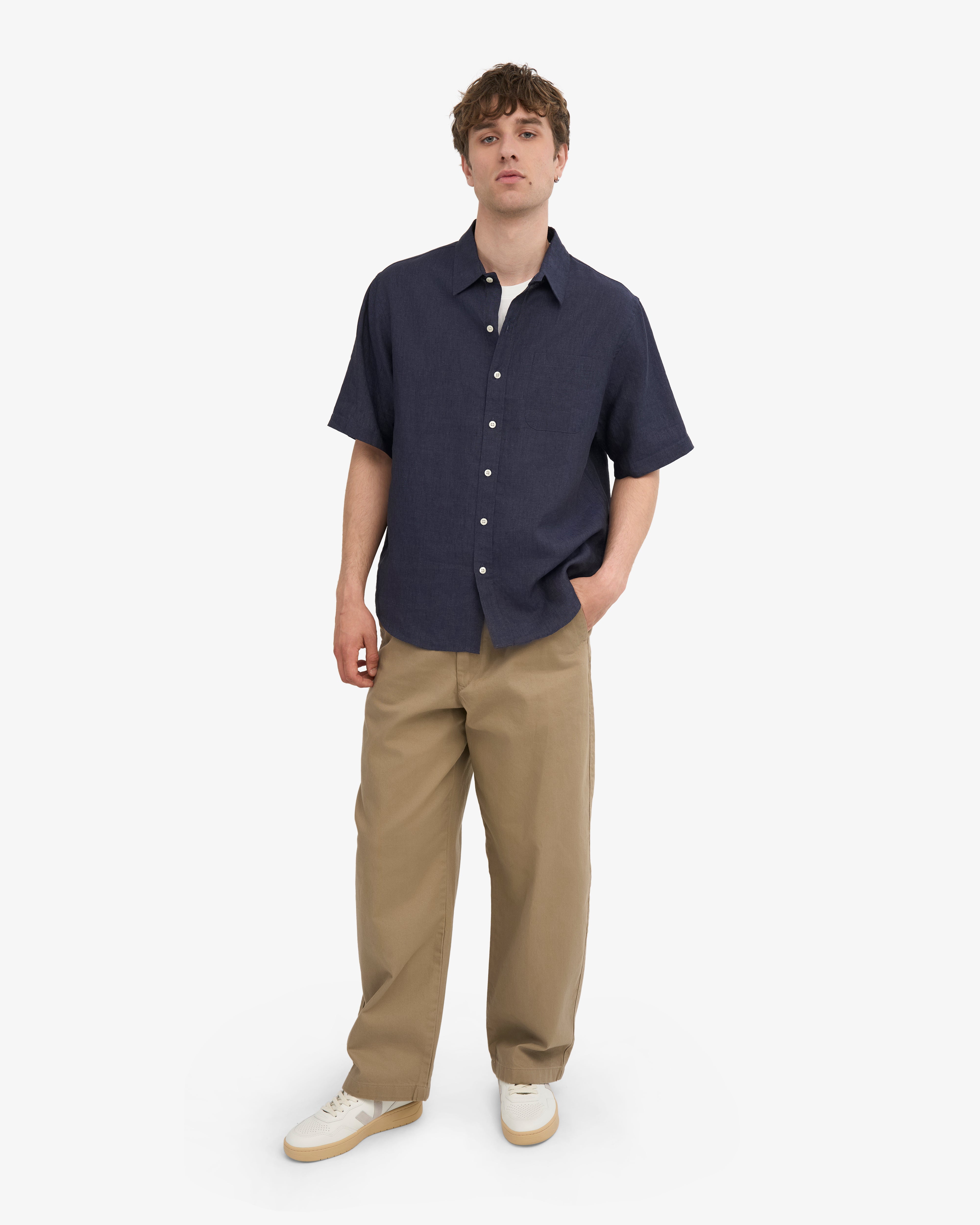 Made from 100% linen, it’s super light and breathable. Basically made for hot days and chill plans. The relaxed fit makes it easy to wear, and the new collar gives it a little extra polish.