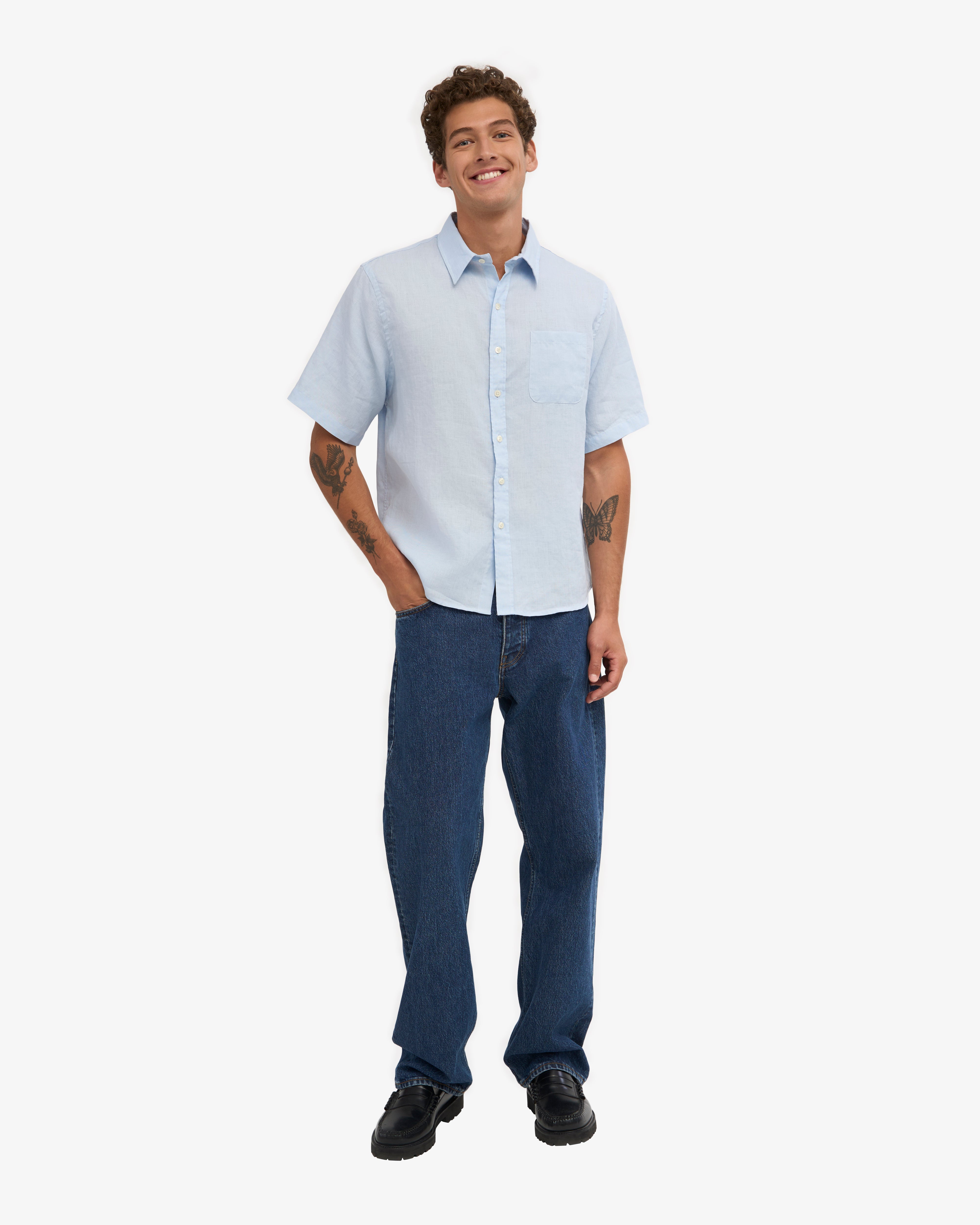 Made from 100% linen, it’s super light and breathable. Basically made for hot days and chill plans. The relaxed fit makes it easy to wear, and the new collar gives it a little extra polish.
