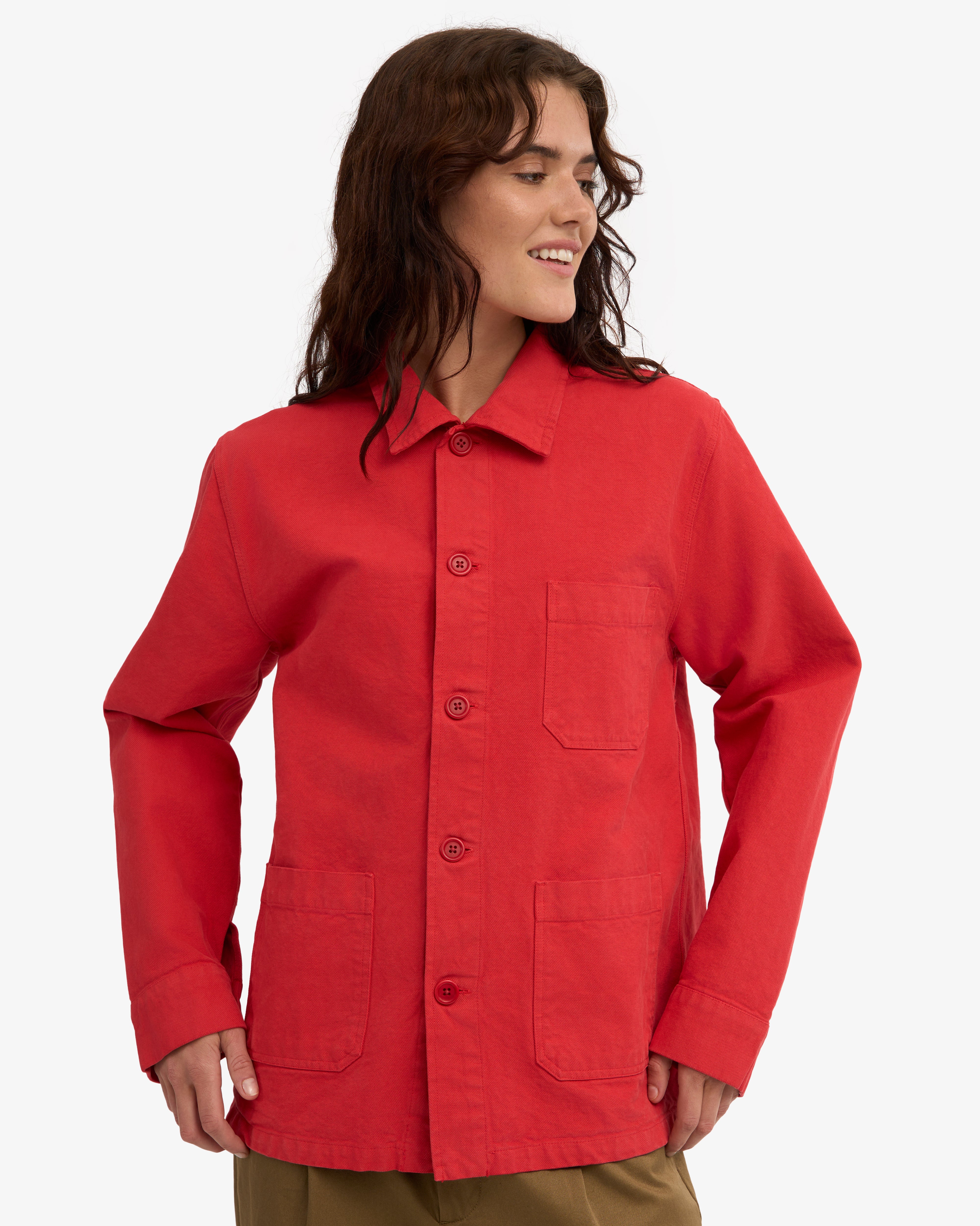 Our Women's Organic Workwear Jacket is a versatile outer layer that effortlessly blends classic style with modern functionality. Inspired by the durability of traditional workwear, this jacket is designed to withstand the demands of everyday life, while keeping you looking stylish. Featuring a regular fit silhouette and relaxed design, perfect to wear as a top layer to add definition to your look. This 'workwear-inspired' jacket adds a touch of rugged sophistication to any look. Pair it with jeans and our Boxy Crop Tee for a casual weekend ensemble, or layer it over a dress for a chic office-ready look. Featuring multiple pockets and a classic front button down, Constructed from premium organic cotton canvas, this workwear jacket offers exceptional durability and breathability, making it the perfect go-to jacket.